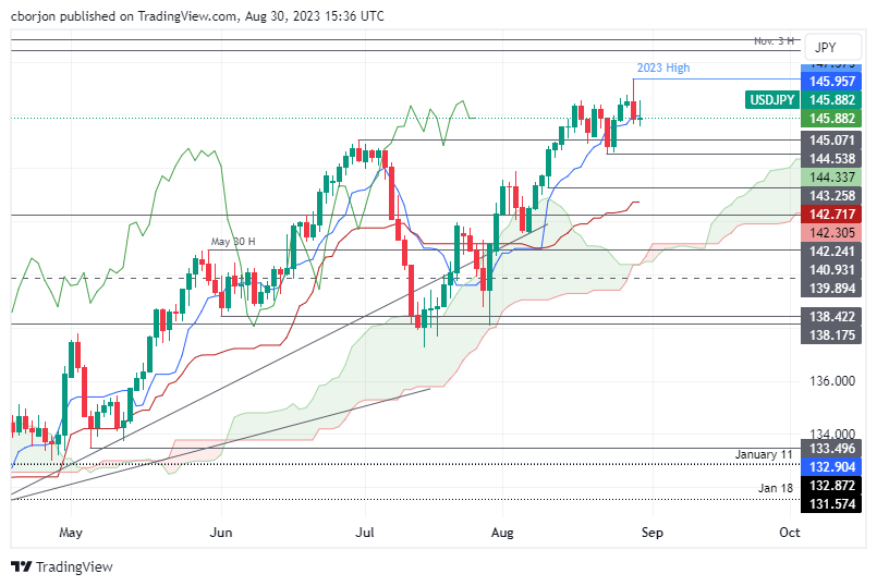 日元/美元连续两个交易日上涨,在上周二的数据显示美国劳动力市场正在降温之后,美元仍然面临下行压力。今天的数据进一步证实了这一点,缓解了美联储提高借贷成本的压力。美元/日元当日下跌 0.13%,报 145.68,此前曾触及日高 146.84。