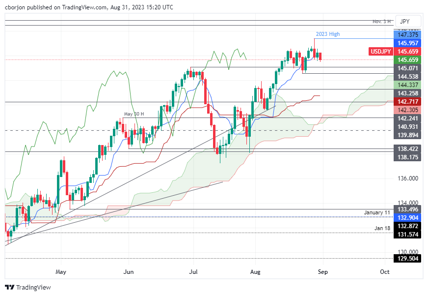 - 因积极的美国数据未能提振该货币对,美元/日元下跌 0.42%,报145.60;美元指数上升 0.51%,至 103.718,但未能提振美元/日元。