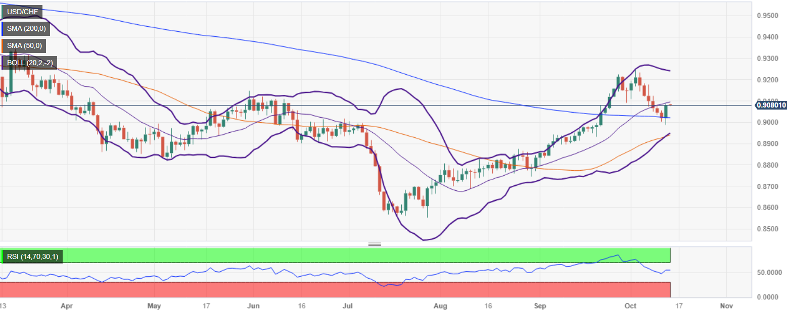 日缐图显示,美元/瑞郎从一个半月低点 0.8986 附近反弹,突破上行,上行突破 200 日均缐(DMA)0.9019,并刷新三日高点 0.9088 附近。也就是说,下一个阻力位在 0.9100。若突破该水平,将面临 9 月 29 日的周期低点 0.9110,一旦突破,美元/瑞郎可能重测 10 月 3 日的高点 0.9245。