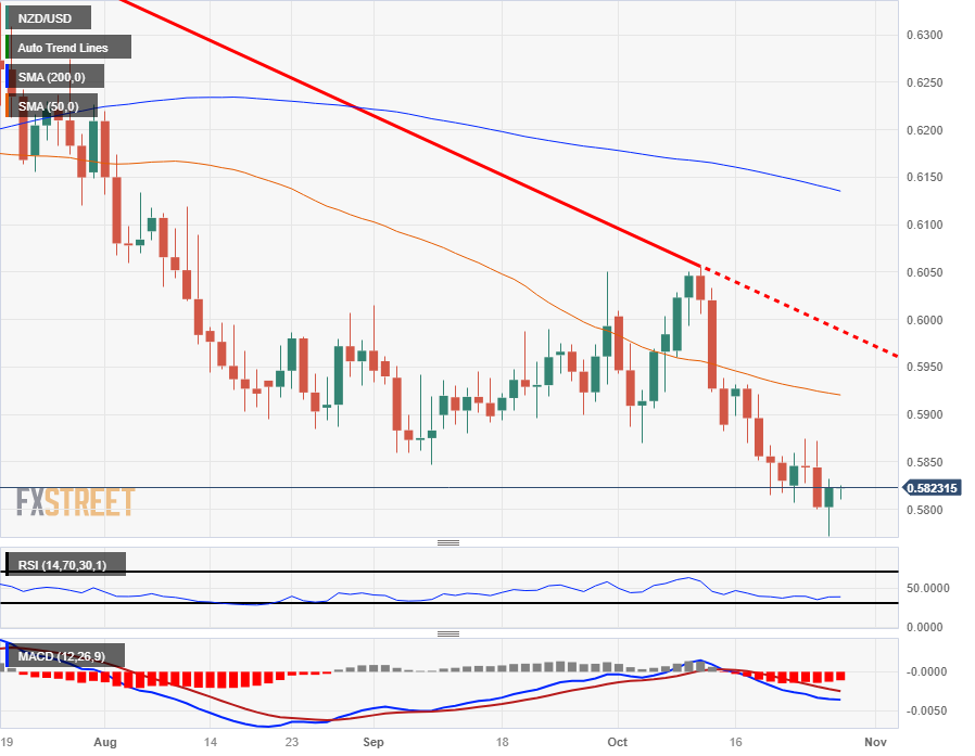 随著纽元兑美元跌至 11 个月低点,纽元将面临 2022 年 11 月触及的震盪低点 0.5740 附近。