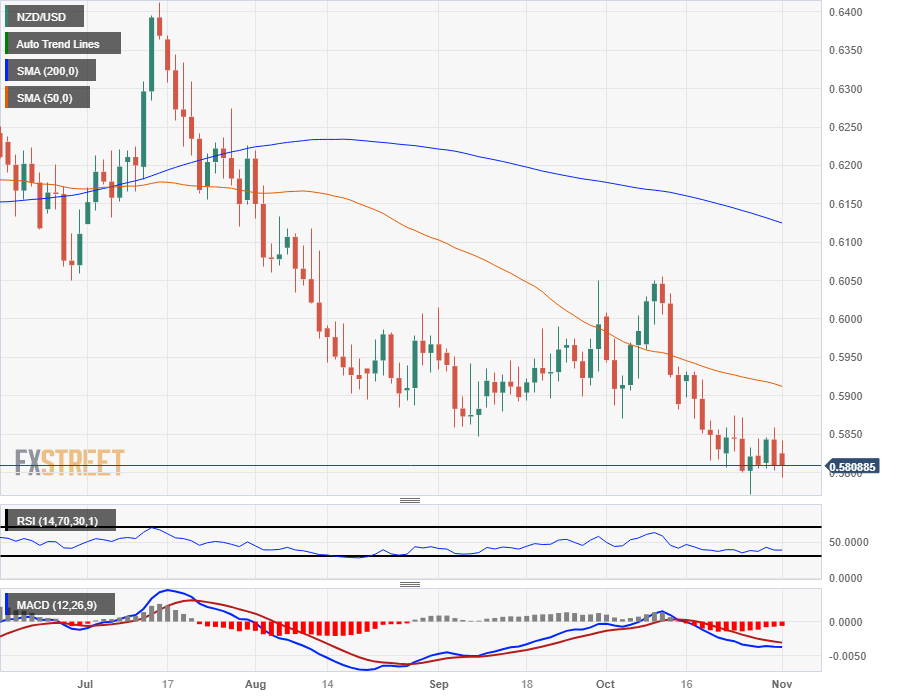 周二纽元/美元温和下跌,因為市场情绪倾向于追捧美元(USD),导致纽元创下本周新高(侭管是小幅新高)0.5860 附近后,从𫔭盘价 0.5840 附近回落。