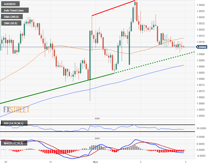 澳元/纽元重新回到1.0900关口,2023年的大部分时间澳元/纽元维持在该水准附近。