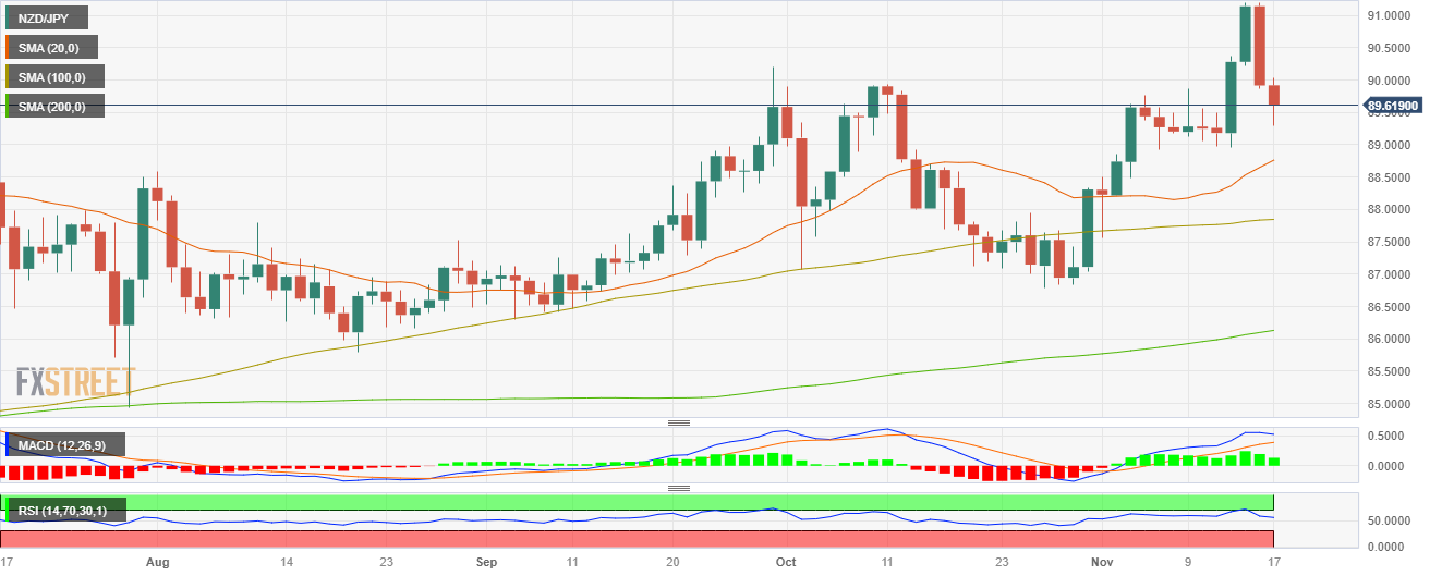 上周五盘中,纽元/日圆叉盘扩大跌势,跌向89.65,原因是投资者继续继上周二和周三上涨后获利了结,纽元/日元上周二和上周三升至2015年以来的最高水准。