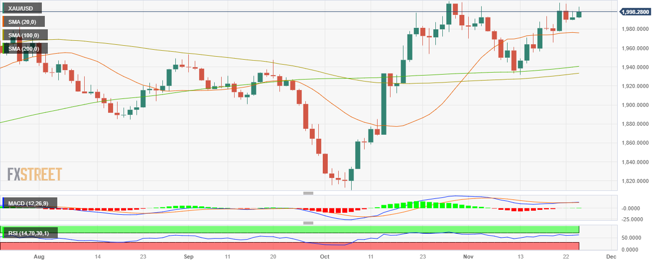 黄金/美元 在周五的交易中受到了标准普尔 PMI 喜忧参半和美元走软的影响。该货币对(通常被认為是以美元计价的黄金价格)正在换手,向2000美元靠拢,并出现了0.30%的涨幅。