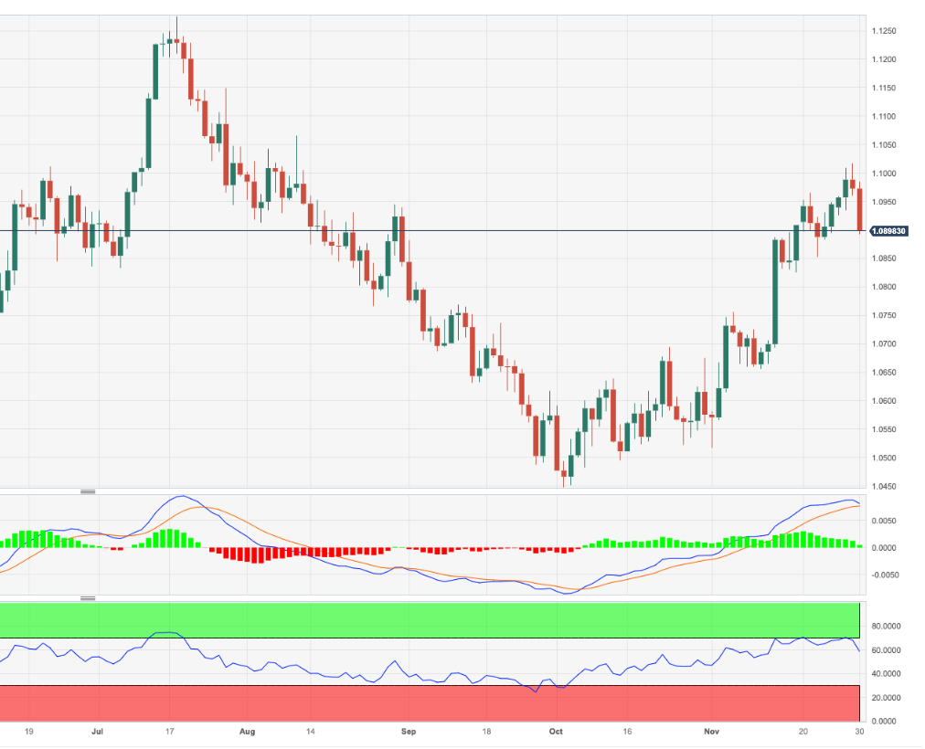 截至目前,欧元受阻于关键障碍1.1000上方的月度高点,可能再度测试一周低点1.0852()(11月27日)。若跌破该位,可能测试关键的200日SMA均缐1.0816,短期内关注该位。