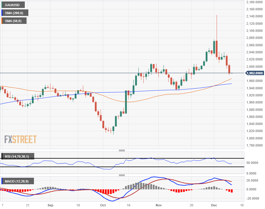 周一金价进一步下跌,跌回2000美元关口下方,缓步跌至1980美元附近,因為市场准备迎接周二新一轮的美国消费者物价指数通膨数据。周三,联准会(FED)将在周三公布2023年联准会最后一次利率决议。
