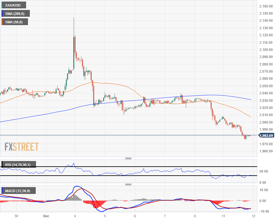 黄金周一的跌势延续上周五从 200 小时简单移动均缐 (SMA) 回落的走势,跌破了 2,000 美元关键价格关口,重新测试 1,980 美元的水平。目前,现货金从上周早些时候刚刚突破 2,140 美元的涨势中下跌了 7.5%,金价近期盘整刻,技术性整理于 2,030 美元附近。