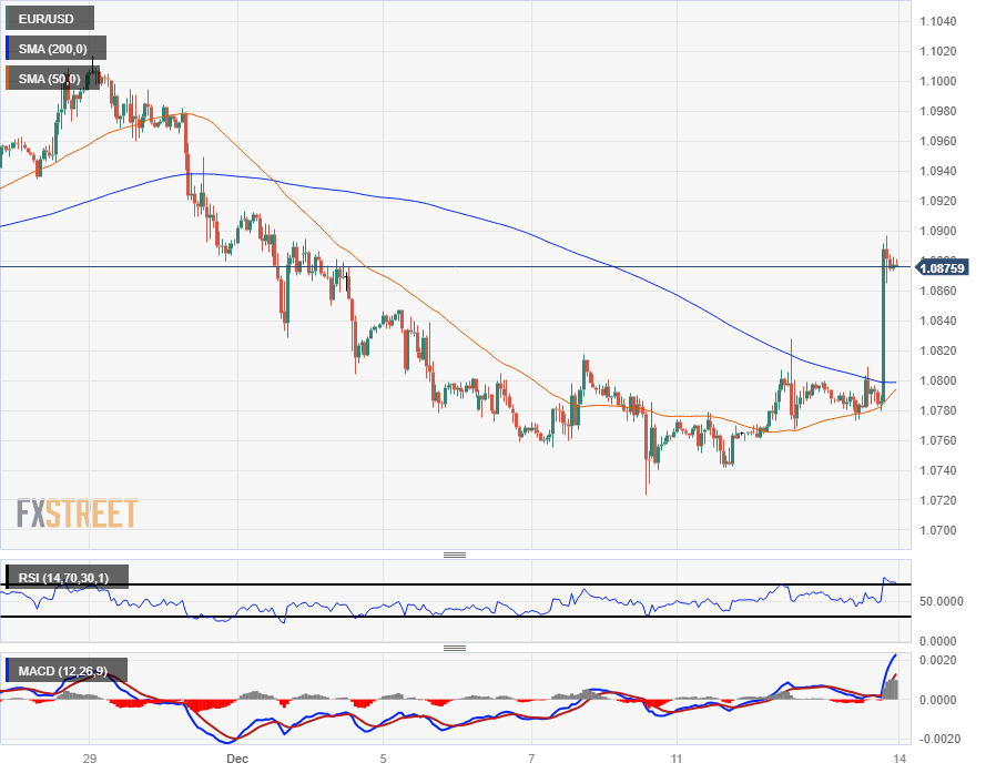 周三欧元兑美元出现强劲𧹒盘,突破位于1.0800的200小时简单移动均缐(SMA),触及1.0900关口。