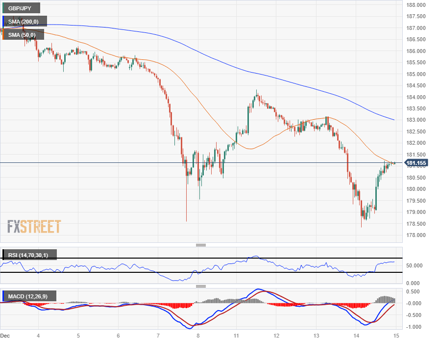 英镑/日圆从九周来低点 178.35 附近反弹后接近 181.00 关口,受阻于 50 小时简单移动均缐(SMA),而 200 小时均缐则积极下探 183.00,阻止近期的看涨潜力。