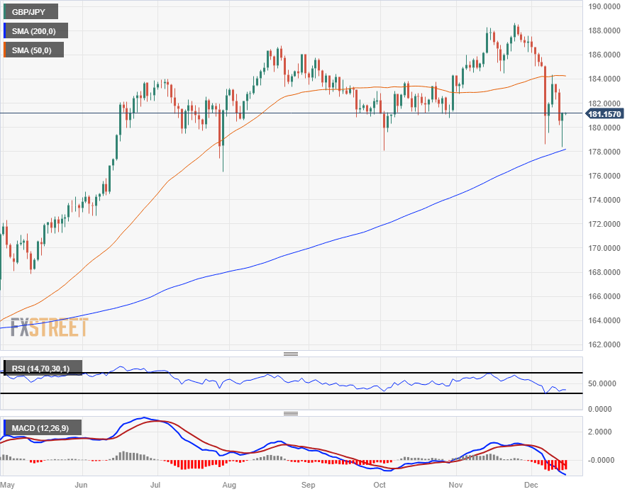 - 英镑/日圆在周三跌至九周低点后反弹至 181.00 关口。