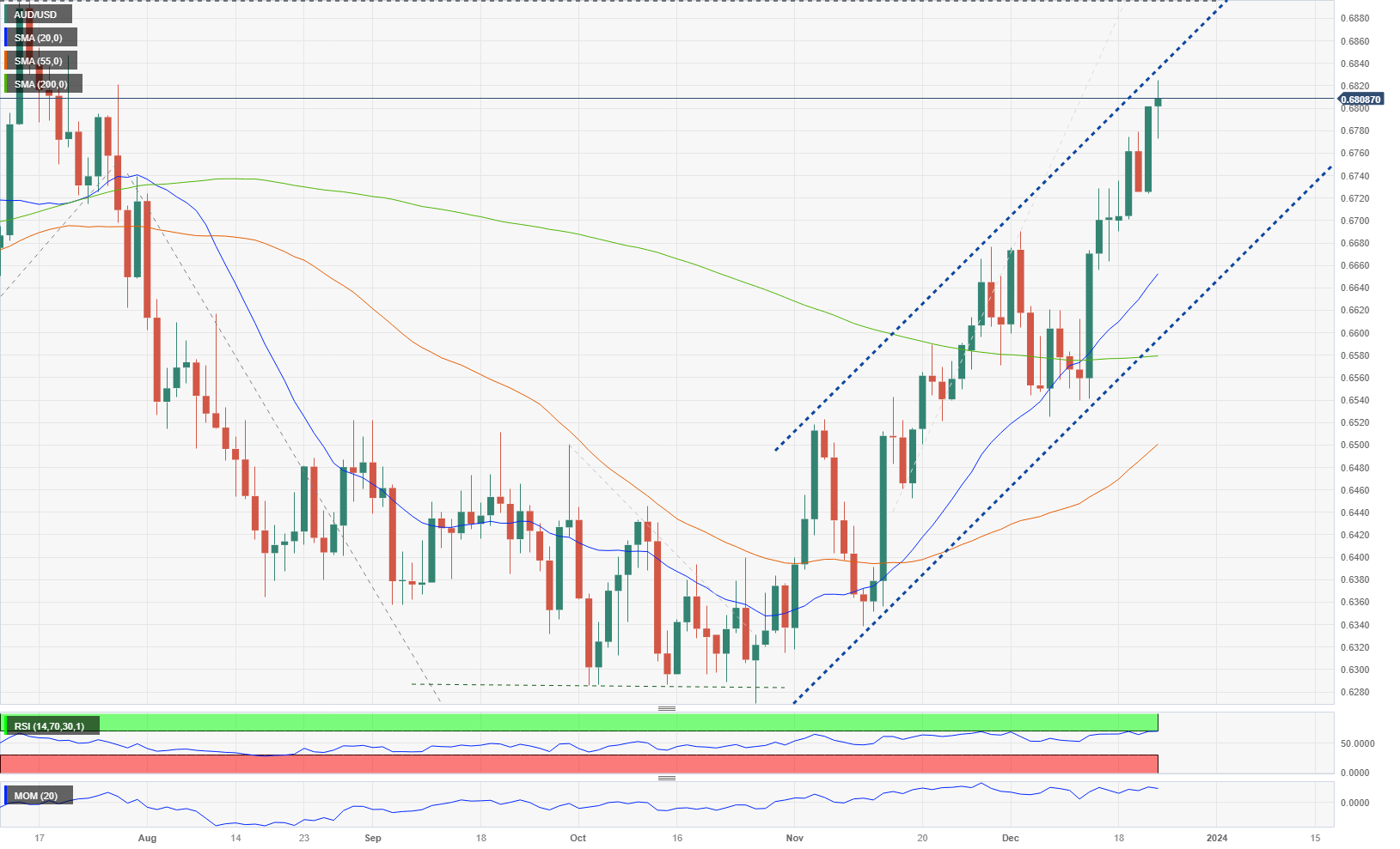 如果出现向下修正,初步支撑位可能在 0.6770 附近,然后是 0.6725。如果跌破 0.6600,前景将从看涨转為中性/看跌。