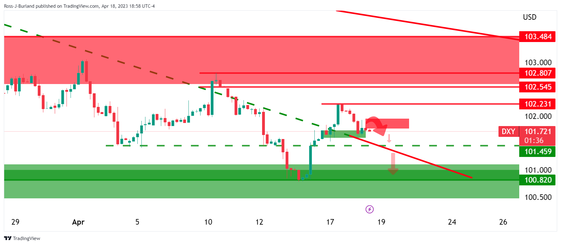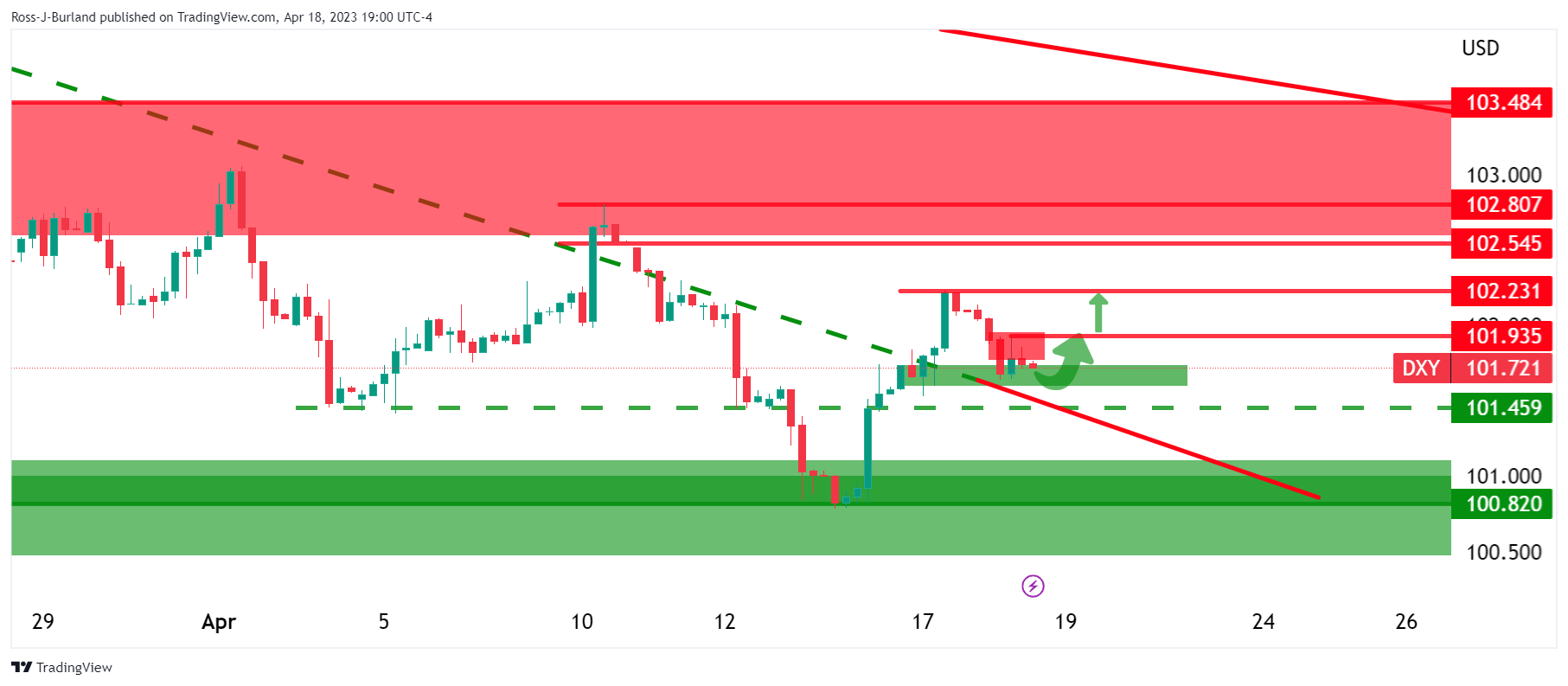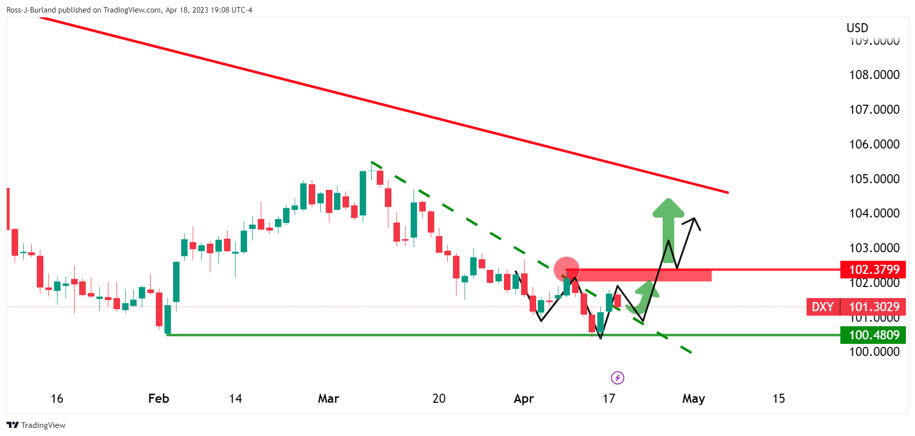 看涨形态可能与上述情况类似,因為多头寻求接近102.20s,然后是关键水平102.80,而到目前為止正处在看跌形态当中,可能的波动如下: