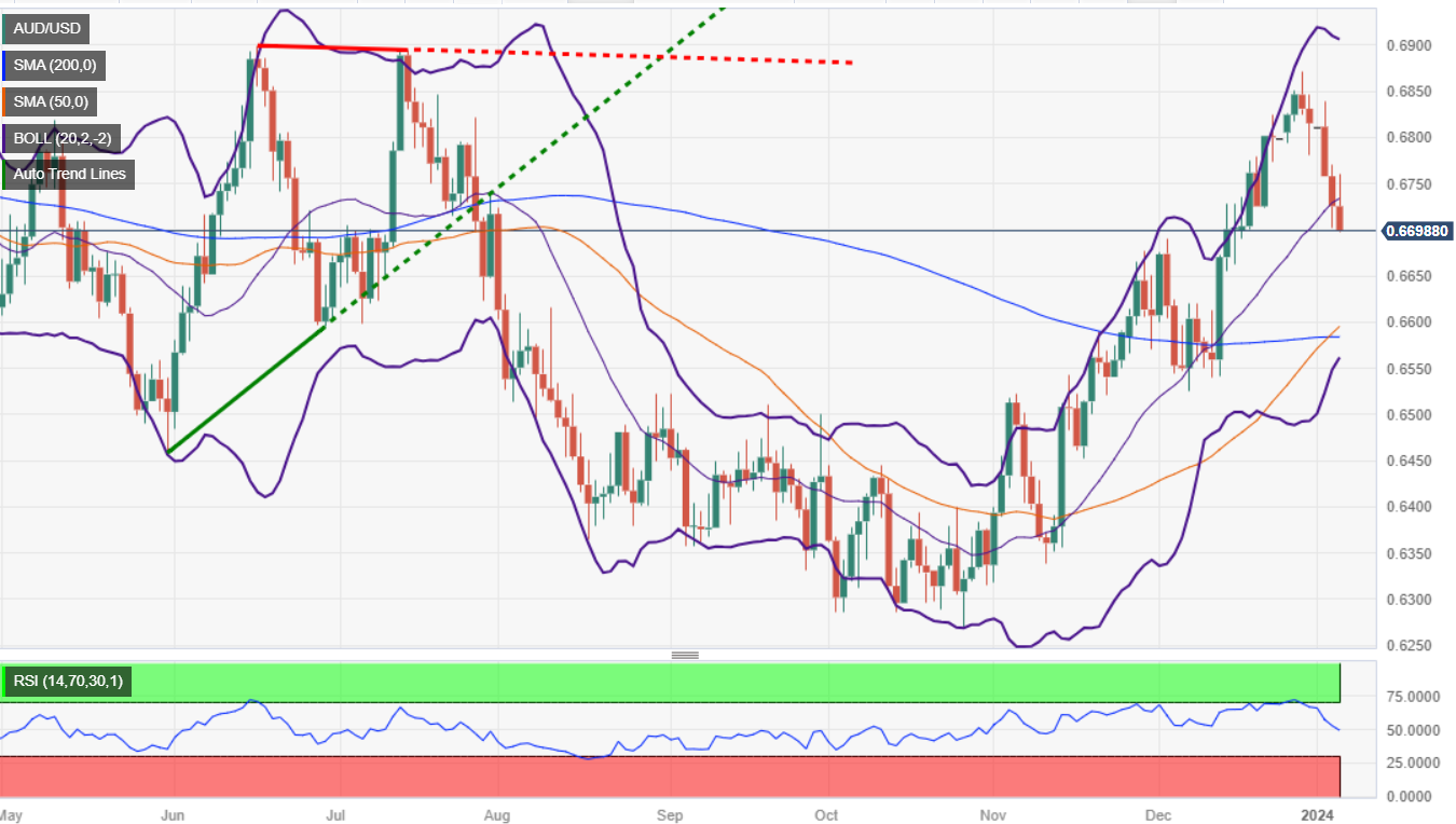 日缐图显示,澳元兑美元面临沉重的下行压力,但仍高于本周低点 0.6701。如果果断跌破,将加剧澳元/美元跌向 50 日和 200 日移动均缐(DMA)交汇处 0.6582/84 附近。一旦跌破,下一个需求区域将是先前的阻力转支撑位 0.6522,即 11 月 6 日的高点。另一方面,如果𧹒方将汇率维持在 0.6700 以上,并夺回当日高点 0.6759,则可能為测试 12 月 28 日高点 0.6871 铺平道路。