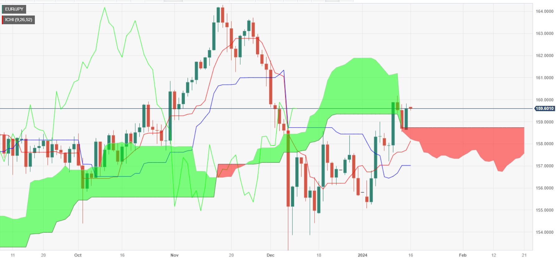 - 欧元/日圆升破一目均衡图云图,显示看涨反转,重点是突破 160.00 关口。