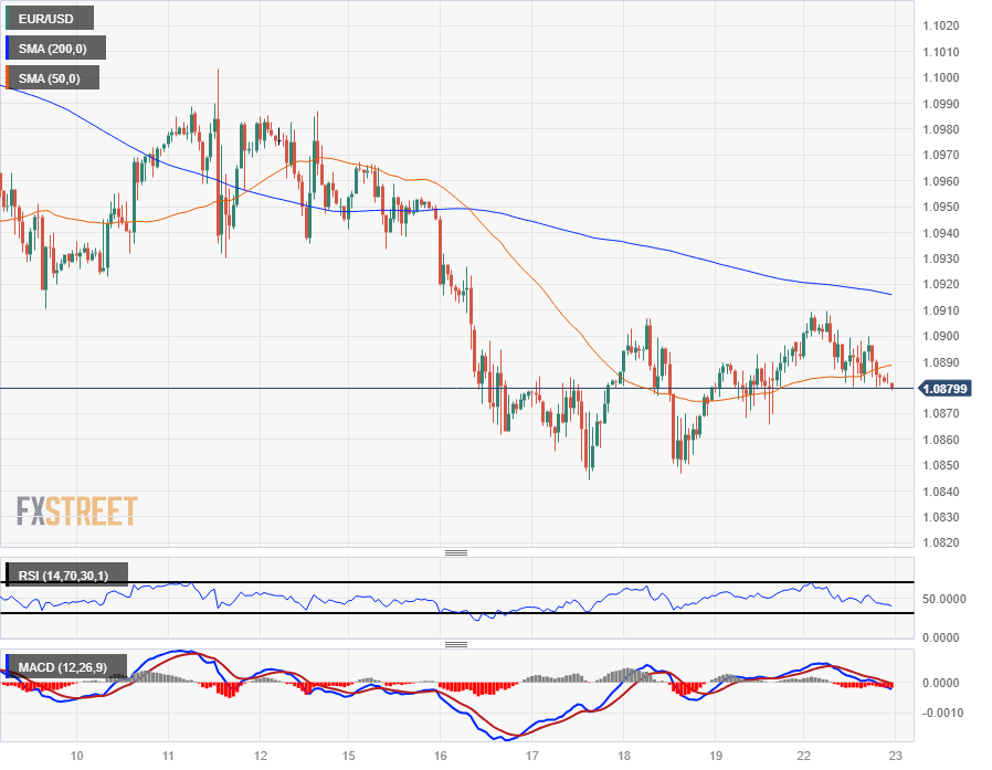 周一早盘,欧元兑美元继续接近 200 小时简单移动均缐(SMA)下方,一度测试 1.0900 关卡上方后跌破该关卡。