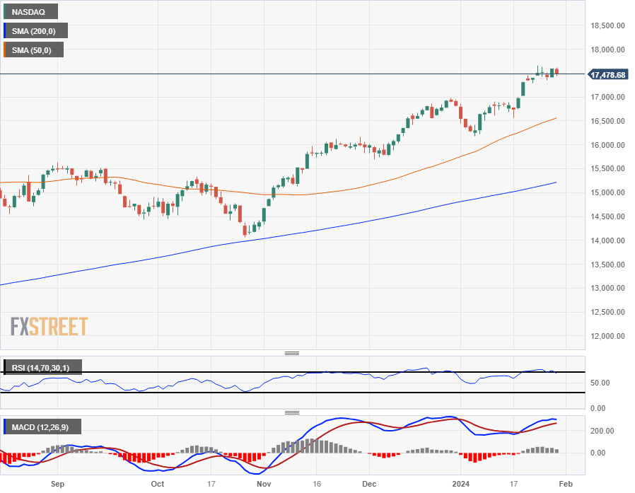 纳斯达克大型股指数预计将连续第三个月收涨,目前自去年 10 月底部 14,000.00 点附近上涨了近 25%。