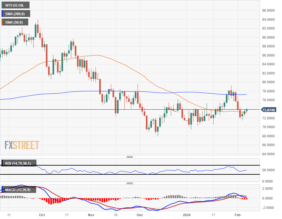 周三,美国西德州中质原油(WTI)价格踯躅不前,试图企稳于每桶 74.00 美元上方,因為美国桶装原油库存再次增加,油价持续低迷。