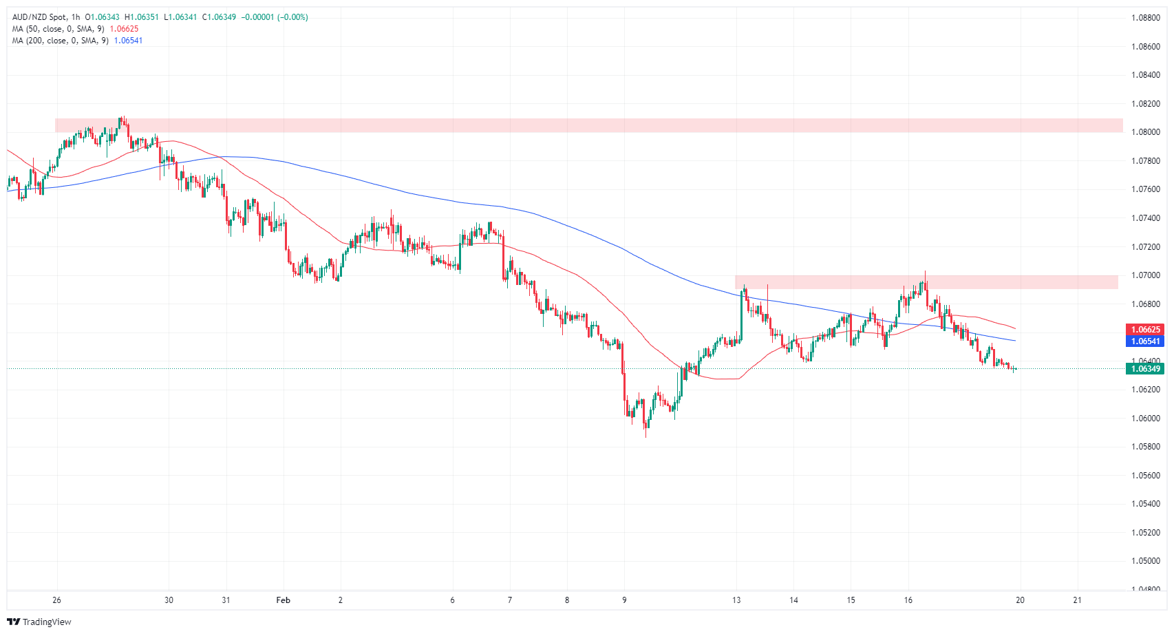 澳元/纽元最新跌至数月低点,测试去年5 月以来的最低𧹒入价,并继有限反弹后,看涨动能耗尽,澳元/纽元处在下跌的200 小时简单移动均缐下方,维持看跌,跌至1.0650。