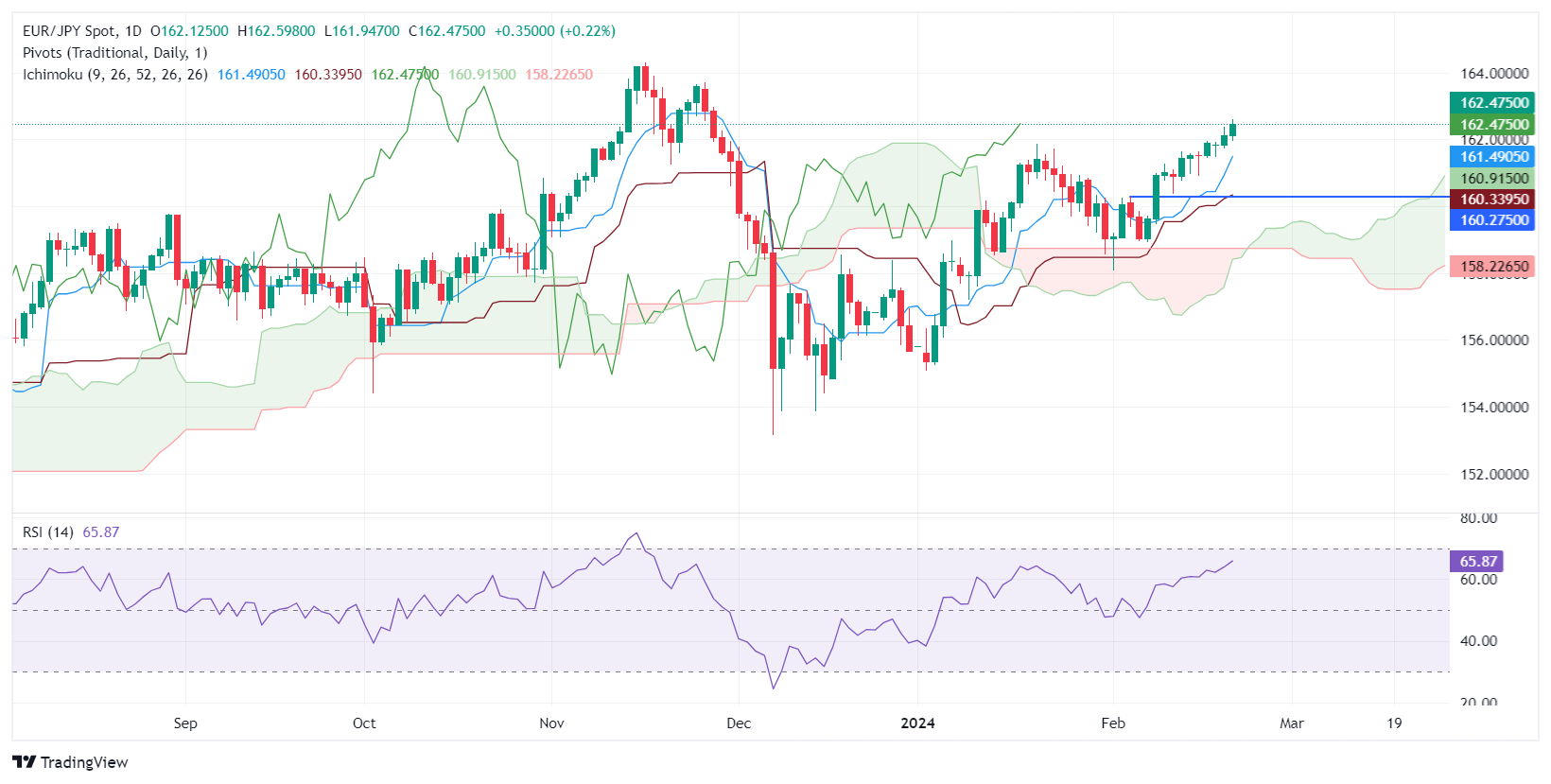 - 欧元/日圆上升至 162.47,受近期联准会货币政策讯号的影响而持续走高。