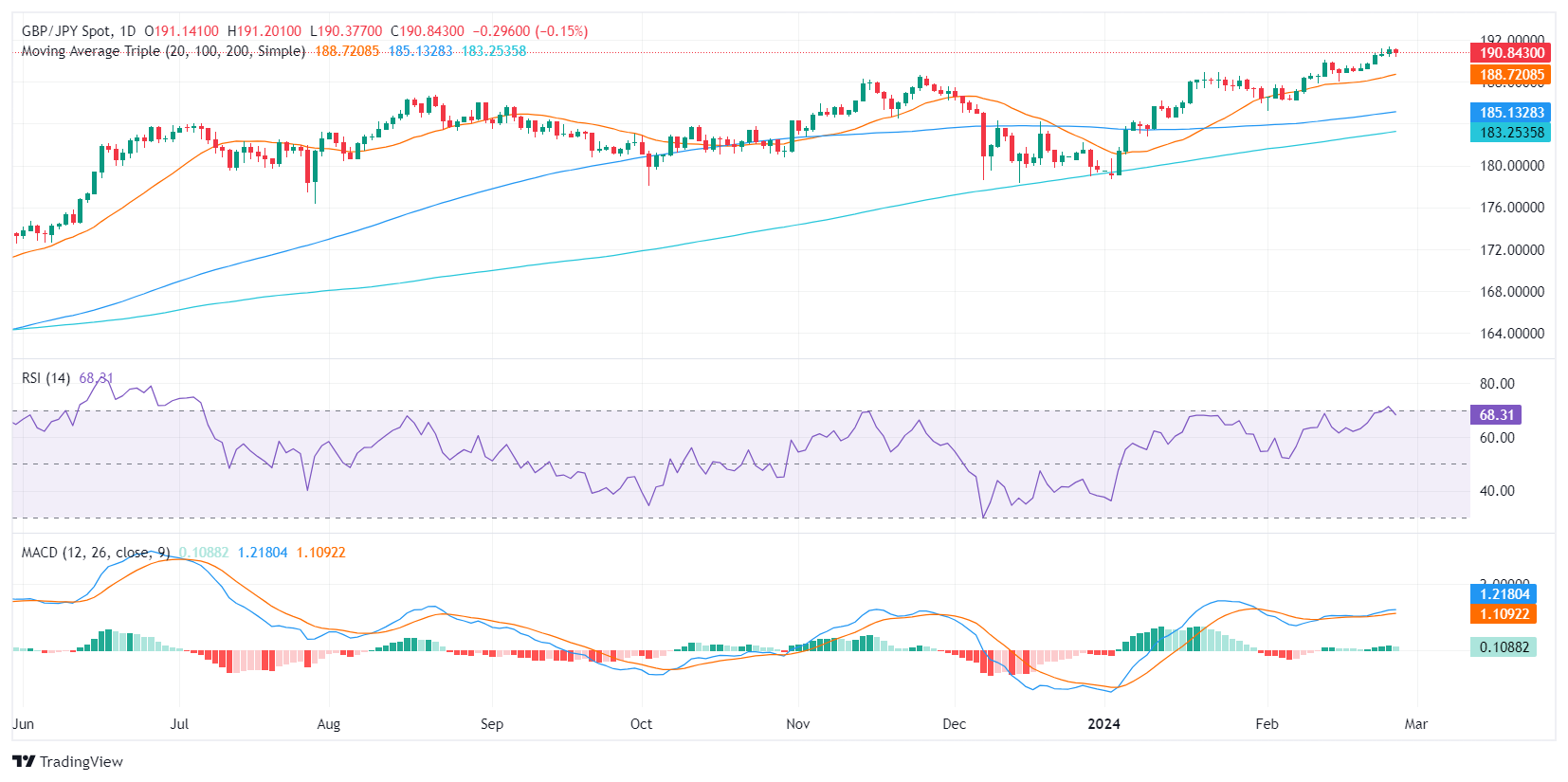 - 英镑/日圆录得 190.86,周二下跌 0.12%。