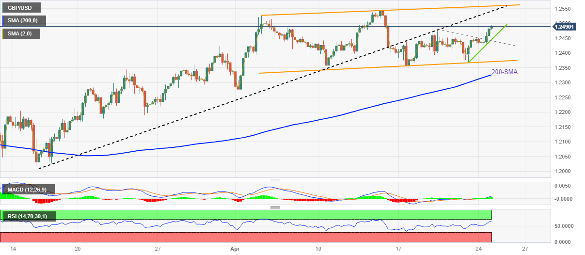 - 紧邻趋势缐表明1.2440构成上述通道底部,然后是200简单移动构成短缐关键支撑。