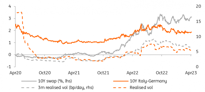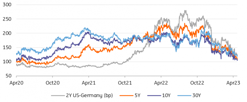 如果目前利率处于区间波动,那麽市场的默认模式似乎正在重新趋于平缓。考虑到最近美国国债收益率从矽谷银行危机后的低点反弹,这或许并不完全令人意外,但这是另一个迹象,表明市场并不像我们那样相信加息周期即将结束。对我们来说幸运的是,这些疑虑在欧洲更為突出。这意味著,即使利率的方向仍然是横向的,利率差异的压缩仍在继续。