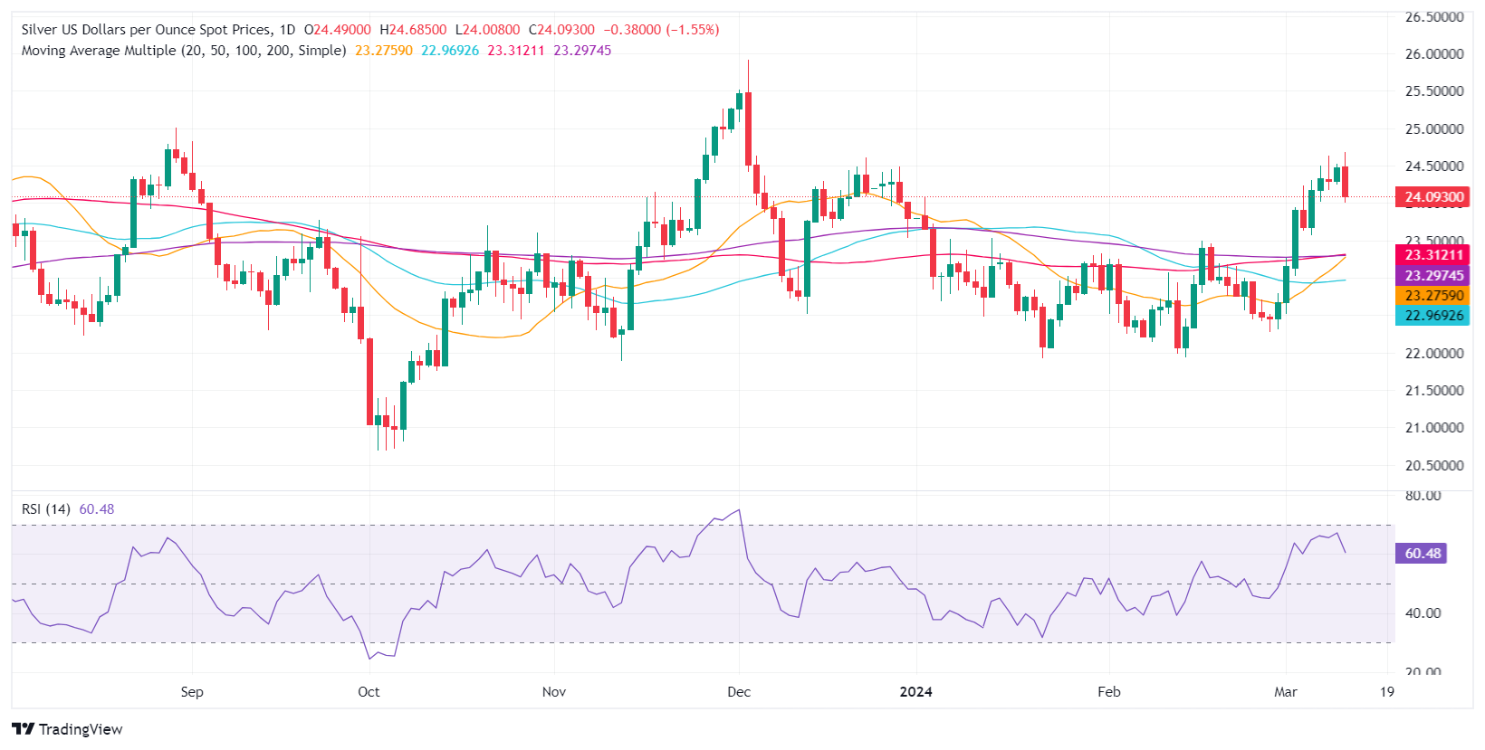 - 银价回升需要维持在 24.09 美元上方;可能会反弹至 24.00 美元至 24.70 美元区间。