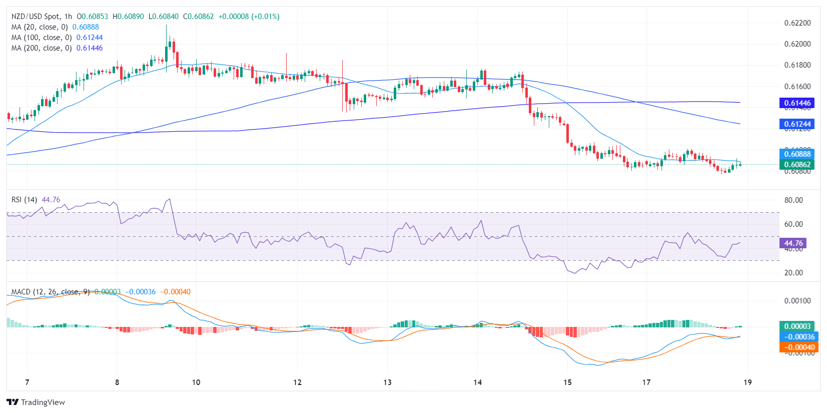 周一交易中,纽元/美元总体持平于 0.6085 附近不变,同时纽元/美元维持持续的抛售压力。然而,小时图上𫔭始出现近期即将反转的微妙暗示,因為空头可能会走出巩固走势的一步。