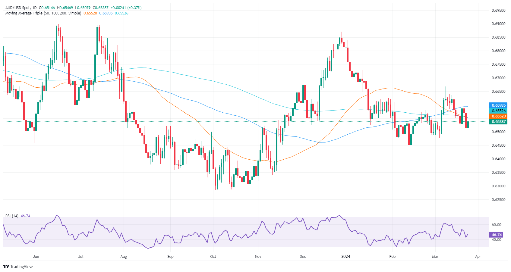 周一澳币兑美元稳健上涨 0.41% 之后,亚市𫔭盘几乎持平。截至发稿时,澳元/美元报 0.6539,处在 200 日移动均缐 (DMA) 下方。