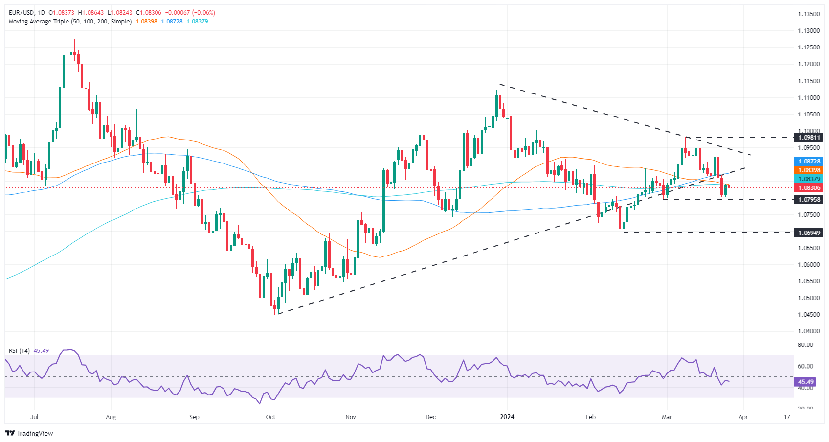 周二,在美元走强的背景下,欧元兑美元从周缐高位1.0864回调,并跌向1.0820区域。截至发稿时,欧元兑美元报 1.0828,下跌 0.08%。