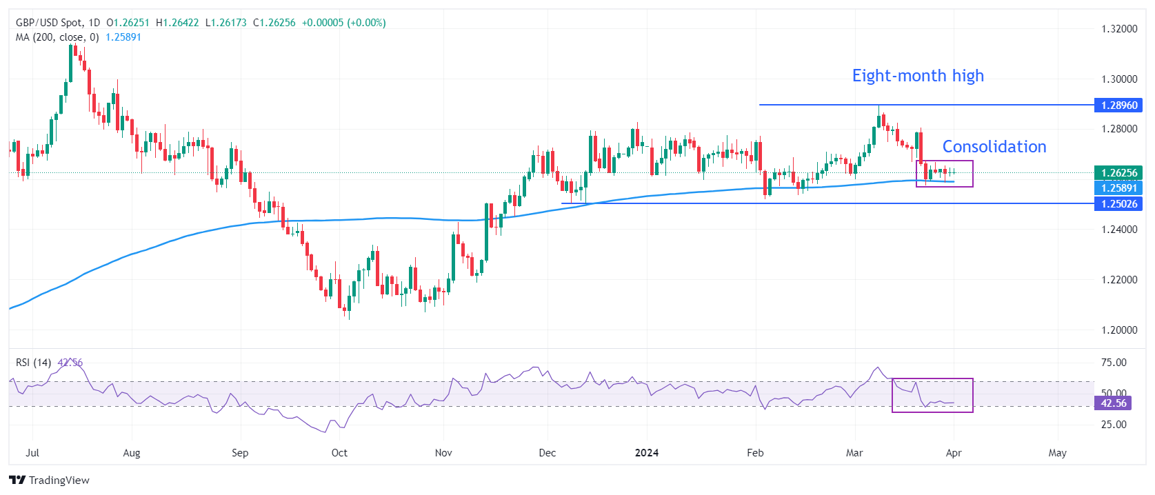英镑(GBP)在周一的伦敦交易时段难以取得决定性的进展,因為在经历了耶稣受难日和复活节周一的周末假期后,投资者尚未重返外汇市场。英镑兑美元在1.2600整数关卡支撑位上方小幅盘整,投资者在等待英国央行(BOE)和联准会(Fed)何时转向降息的新指引。