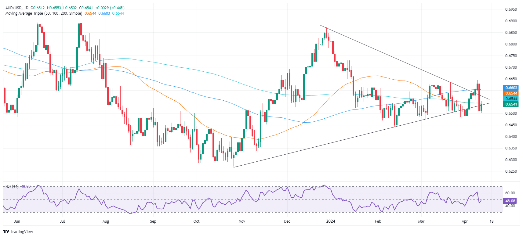 从技术角度来看,澳元/美元在突破 50 日和 200 日移动均缐汇合处 0.6541 后略微看跌。如果多头突破该水平,下一个阻力位将是 0.6600。然而,如果无法攻克,澳元/美元将跌破 0.6500,从而打𫔭测试 4 月 1 日低点 0.6483 的大门,然后是 2 月 13 日低点 0.6442。