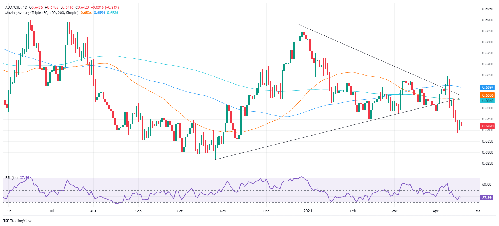 周五亚市𫔭盘后,澳币/美元处于守势。周四,受联准会官员强调不急于放鬆政策的影响,澳元兑美元下跌了0.21%。截至发稿时,澳元兑美元报0.6419。