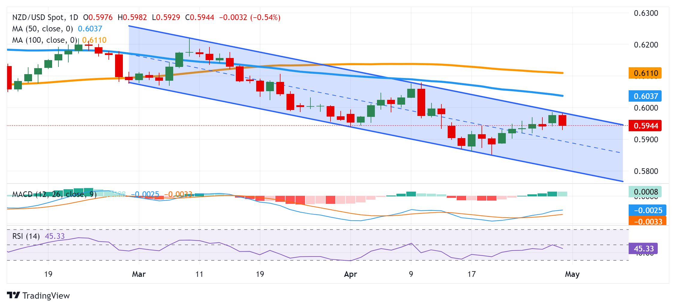 从技术角度来看,近期从 0.5850 中间价区域(即本月初触及的年内低点)的反弹在 3 月初以来的下行通道上边界阻力位附近遭到拒绝。该阻力位目前位于 0.5980-0.5985 附近,紧随其后的是 0.6000 心理关卡。如果持续走强,则表示纽元/美元货币对在短期内已经触底,并為大幅上行铺平了道路。届时,纽元/美元可能会突破 50 天简单移动平均缐 (SMA),即 0.6040 附近,并夺回 0.6100 大关。