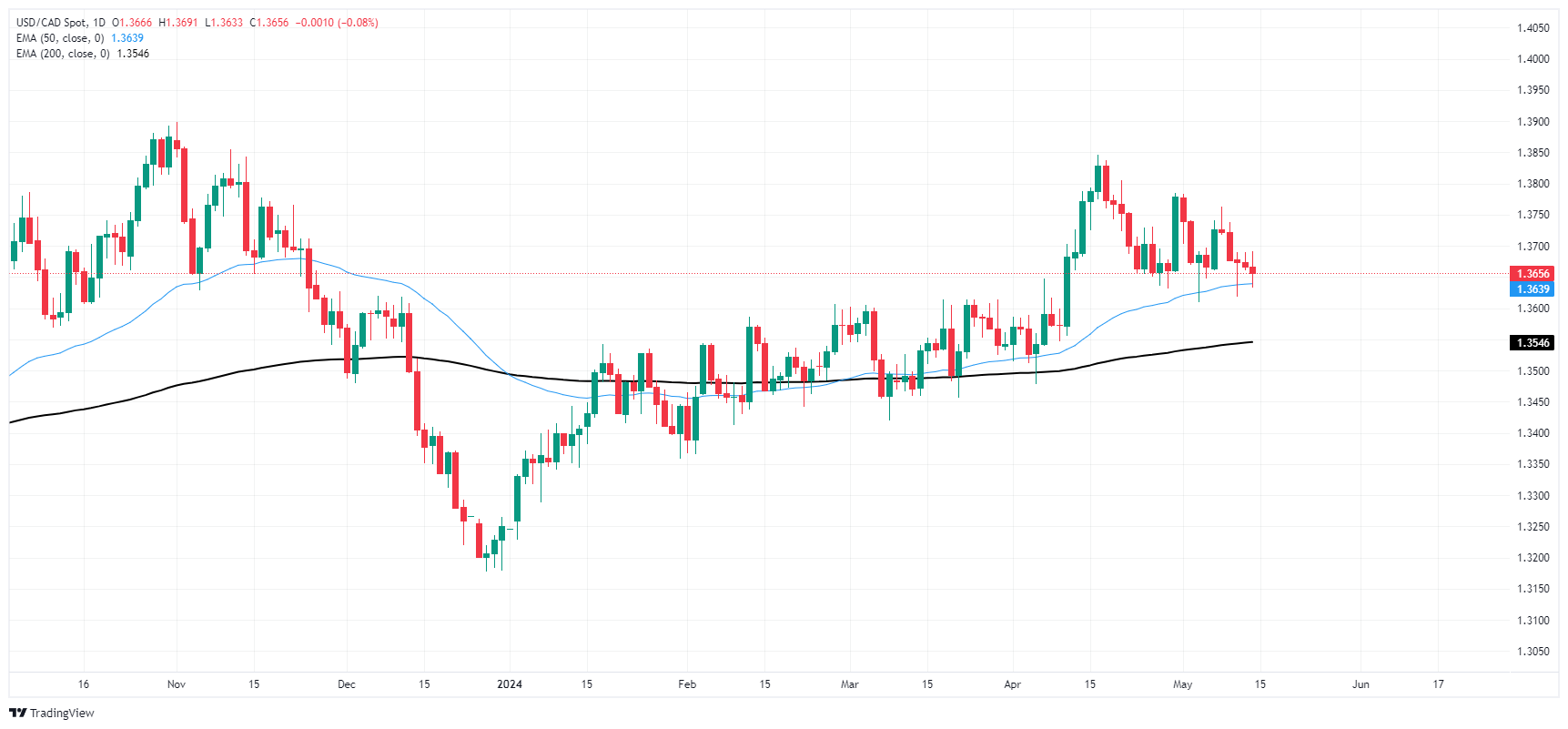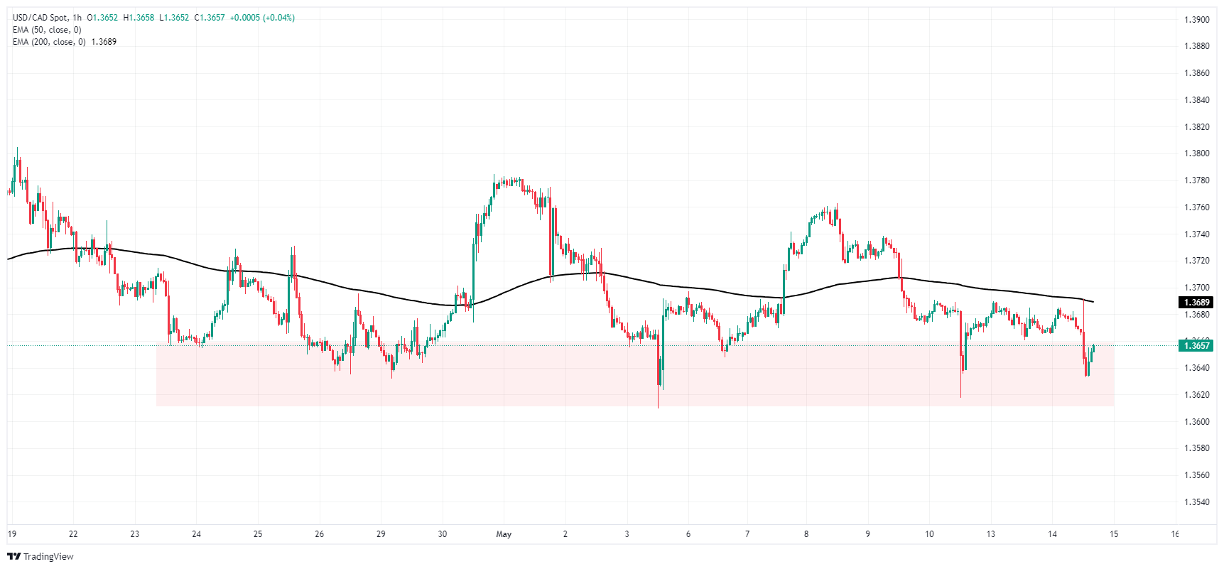 美元兑加币跌回 1.3660 下方熟悉的需求区,但短期内该货币对仍在缓步前进。𧹒盘继续在 200 小时指数移动平均缐 (EMA) 1.3691 附近循环。