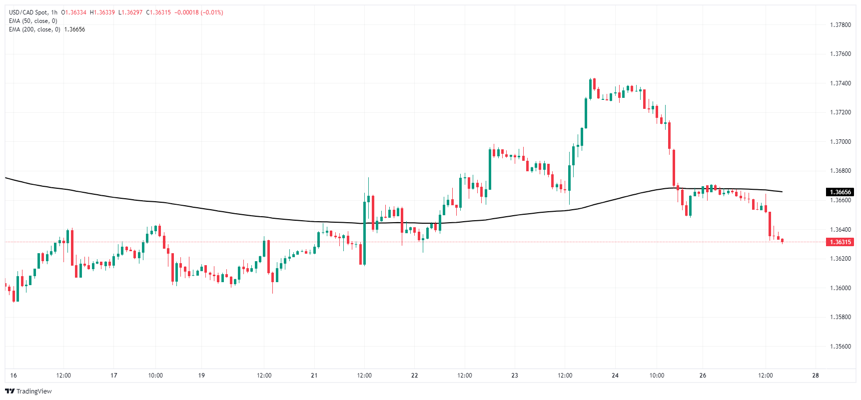 美元兑加币周一跌回熟悉的密集区,延续了上周晚些时候1.3740附近高点的跌势。该货币对将触及 1.3600 关卡附近的技术支撑位,而 200 日指数移动均缐 1.3553 附近则是该货币对的长期下限。