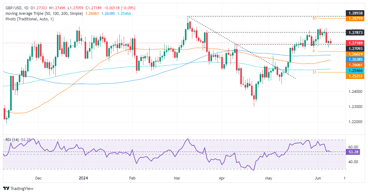 - 技术前景显示中性偏向,动能减弱,在1.2687-1.2750之间盘整。