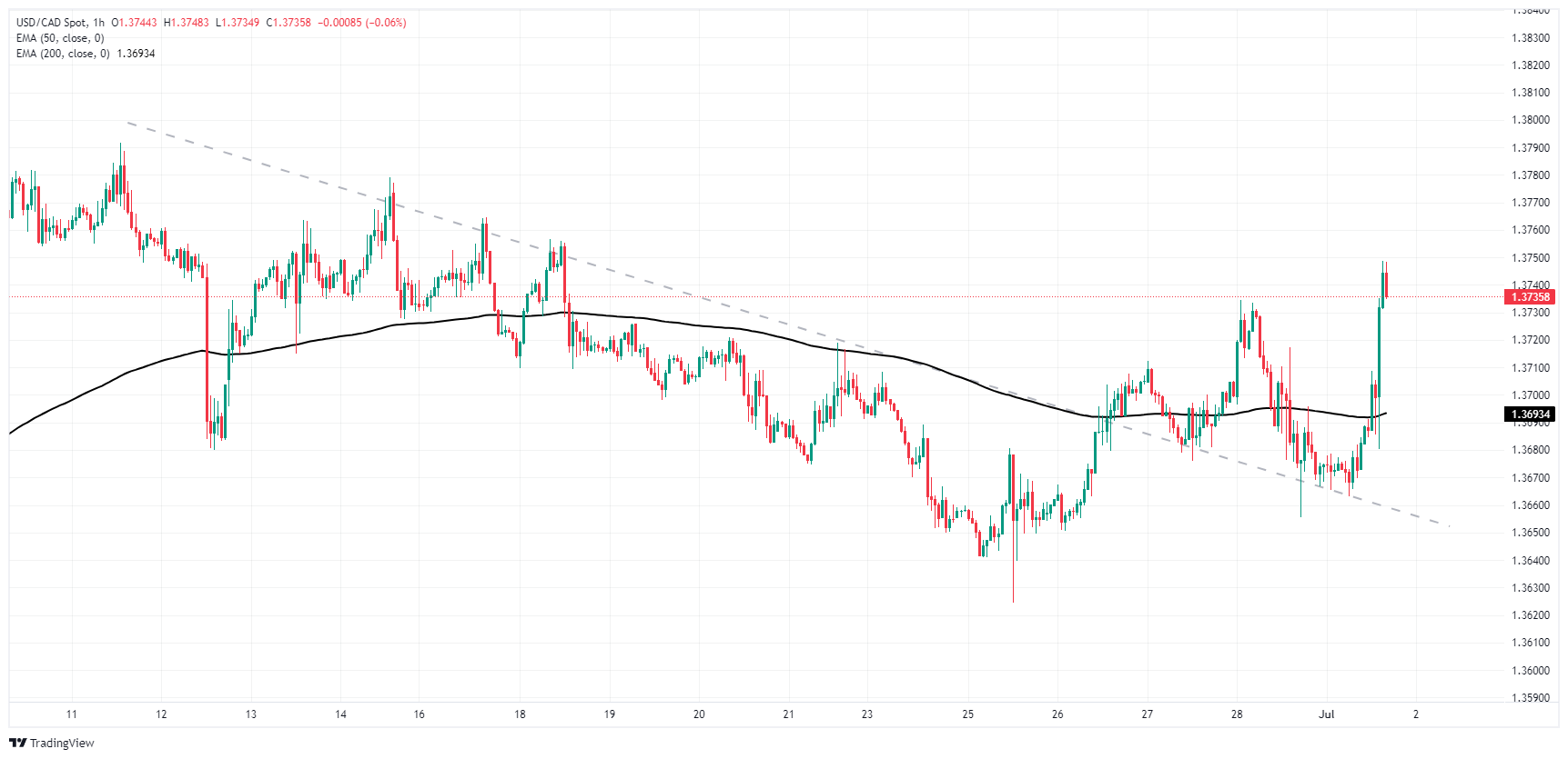 美元/加币在周一测试 1.3750 之后创下了多周新高。该货币对从上周跌破 1.3630 后反弹,目前已收复失地。不过,由于该货币对仍在200小时指数移动平均缐 (EMA)附近徘徊,因此盘中价格走势仍偏向震盪。