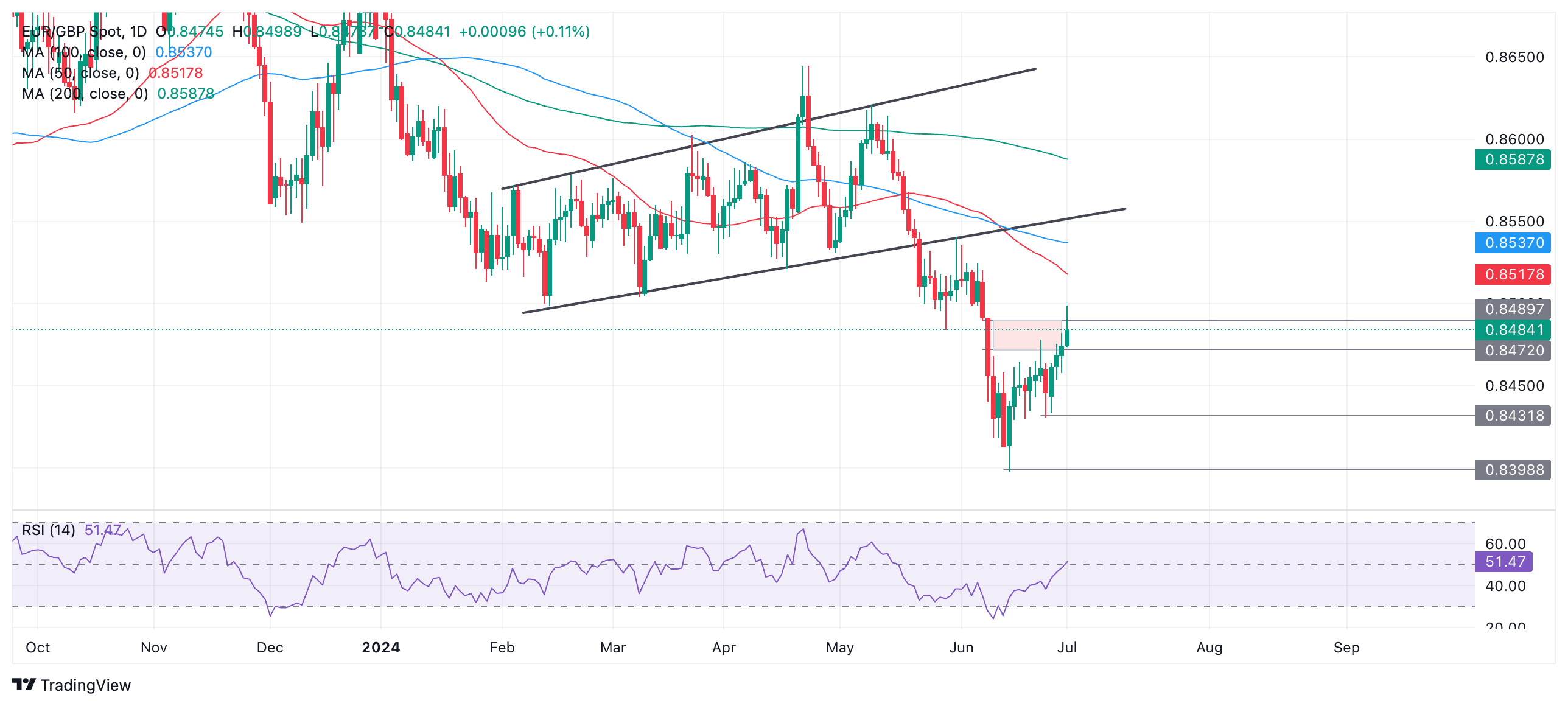 - 欧元/英镑已经上涨并填补了 0.8472 和 0.8490 之间的价格缺口。
