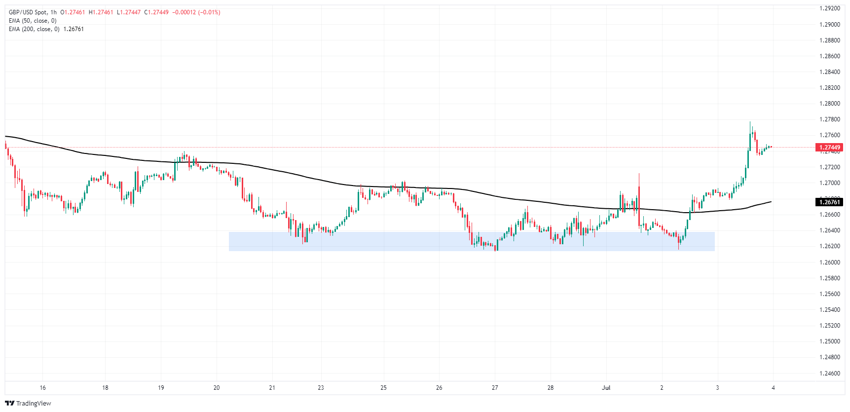 英镑兑美元从 1.2640 下方的需求区延续了近期看涨反弹,周三攀升至 1.2780,使𧹒盘走强,英镑/美元处在 200 小时指数移动均缐 (EMA) 1.2676远上方。