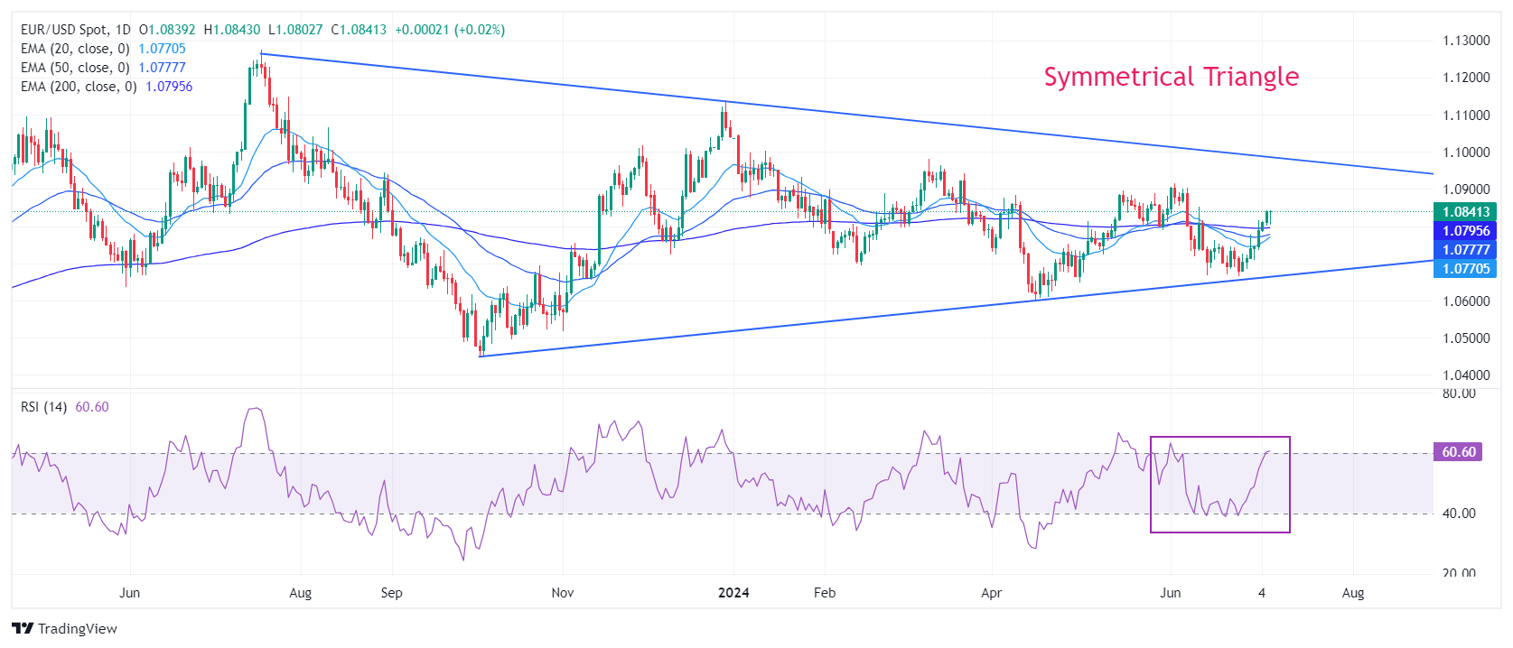 技术分析:欧元/美元在1.0800上方站稳脚跟