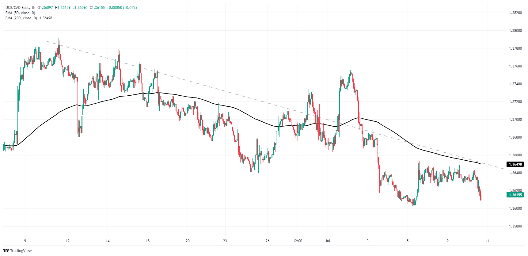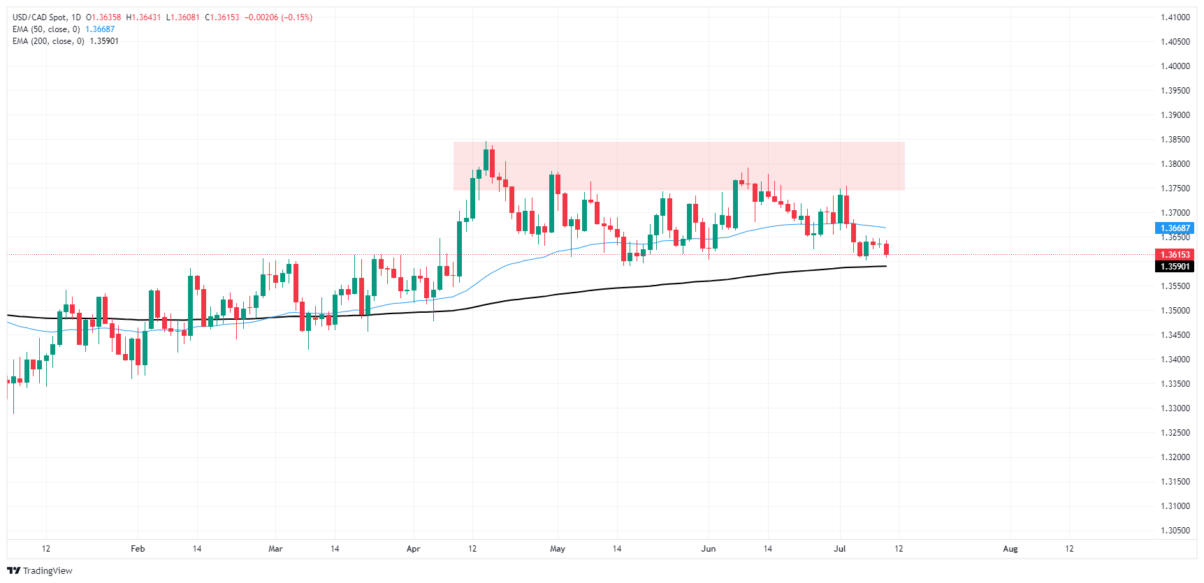 美元/加元继续略高于1.3600水平附近徘徊,但近期空头压力推动美元/加元走低,使该货币对从盘中 1.3640 附近的盘整中回落。日缐烛台继续向 200 日指数移动平均缐 (EMA) 1.3590 下移,因為𧹒盘受到长期移动平均缐和 1.3750 以上供应区之间的挤压。
