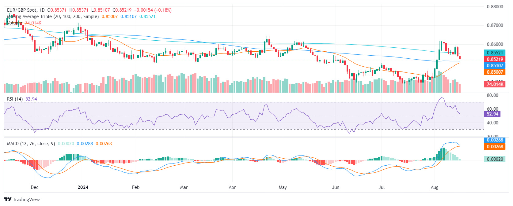 在技术层面上,该货币对的相对强弱指数(RSI)徘徊在 50 点左右,显示市场情绪处于平衡状态,牛市和熊市均未控制市场,但有明显的下跌趋势。移动平均收敛背离(MACD)指标显示绿柱减少,显示未来交易时段可能出现下跌势头。