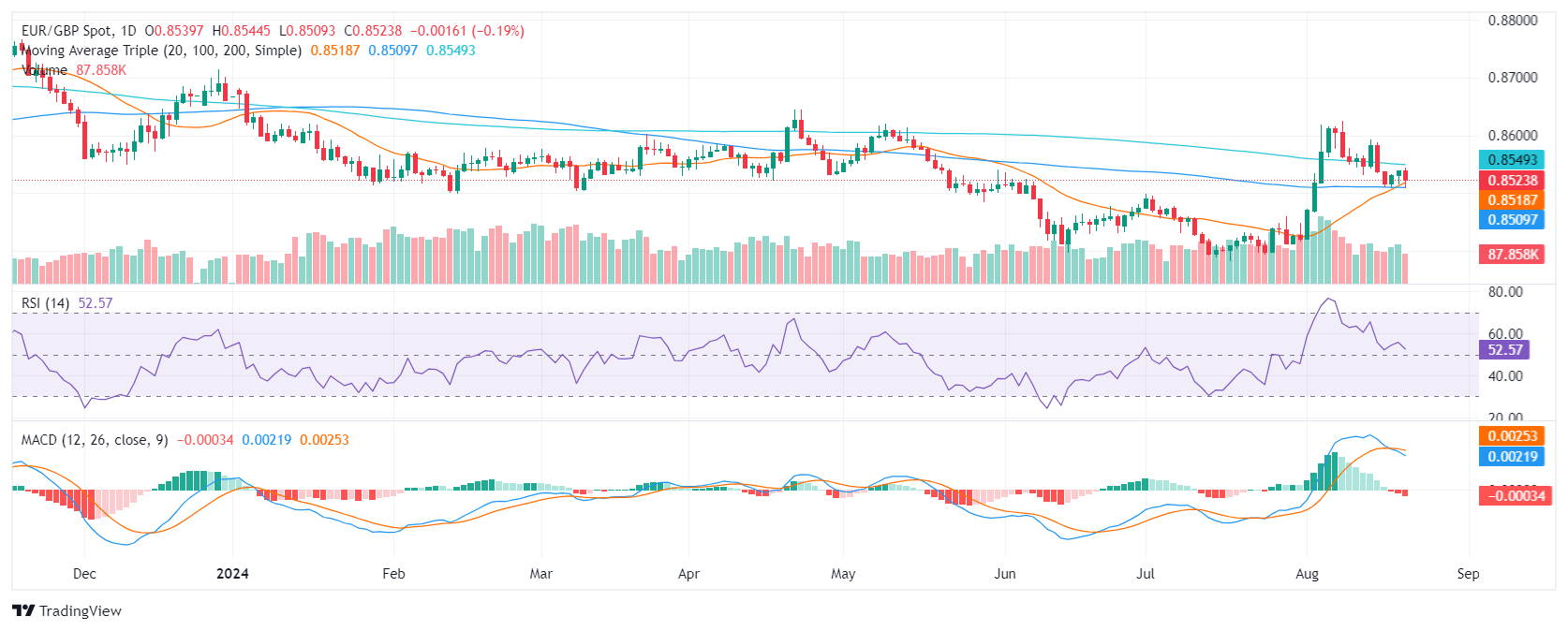 周四,欧元/英镑货币对继续下行,跌幅為 0.30%,接近 0.8490。技术指标显示的前景喜忧参半,卖盘似乎占据了主导地位。