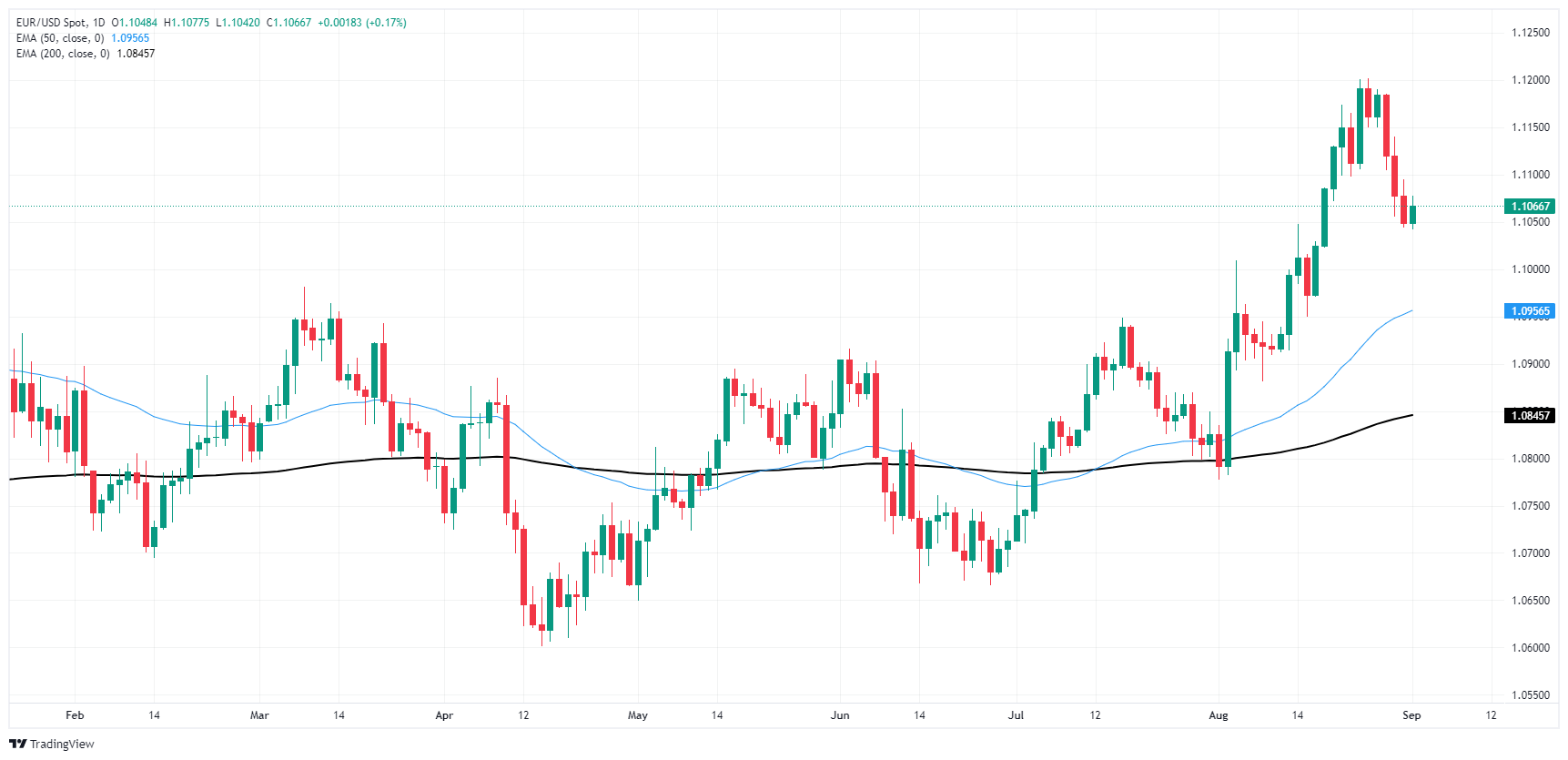 - 欧元/美元在平静的周一于 1.1050 附近获得支撑。