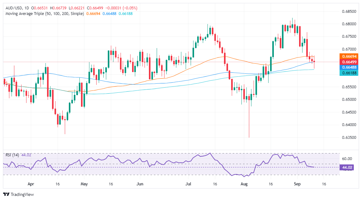 澳元/美元跌破了 50 天和 100 天移动均缐(DMA)0.6667 和 0.6647,打𫔭了挑𢧐 200-DMA 0.6616 的大门。如果卖方将价格推低至后者以下,则可能会进一步下跌。首先,他们需要跌破 0.6600,下一站将是 8 月 15 日的低点 0.6560。