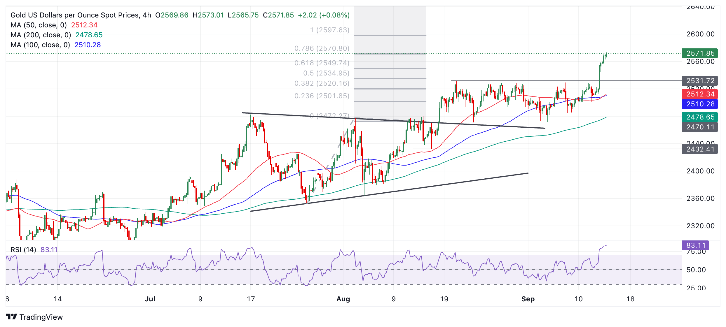 黄金(XAU/USD)突破了多周的横盘区间,突破了之前的历史高点 2531 美元。