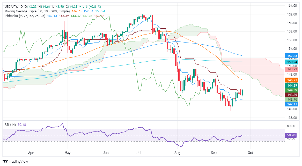- 跌破 144.00 后,支撑位在 143.39(Kijun-Sen)、142.76(Senkou Span A)和 142.13(Tenkan-Sen)。