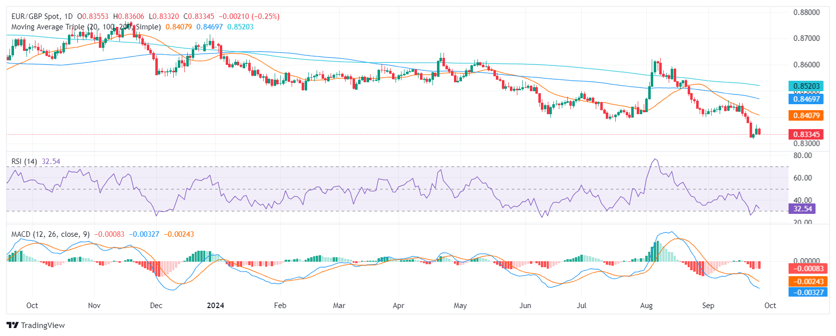 欧元兑英镑货币对在过去几个交易日持续下跌,周四跌至 0.8330,跌幅為 0.30%。