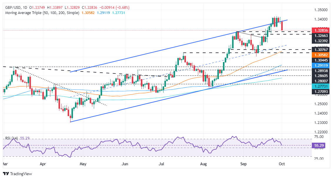 - 跌破 1.3300 可能导致测试 1.3266 的支持,进一步下行风险指向 1.3200 和 1.3145。
